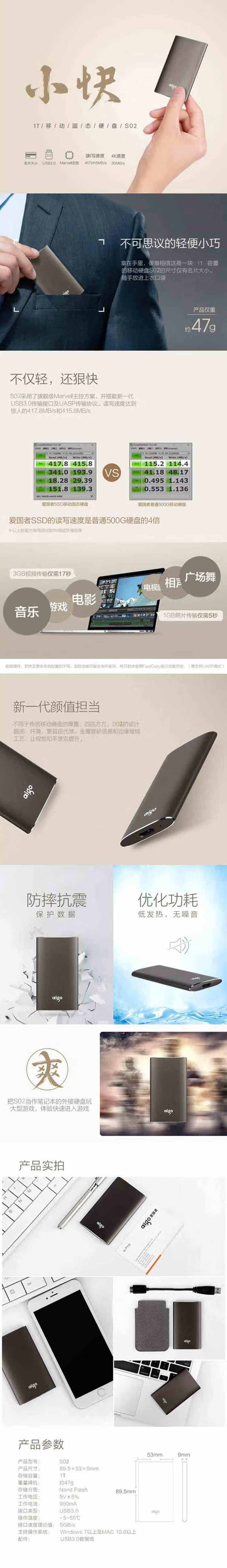 • 爱国者 S02 SSD固态移动硬盘 1T USB3  高速迷你手机电脑通用按(个)销售