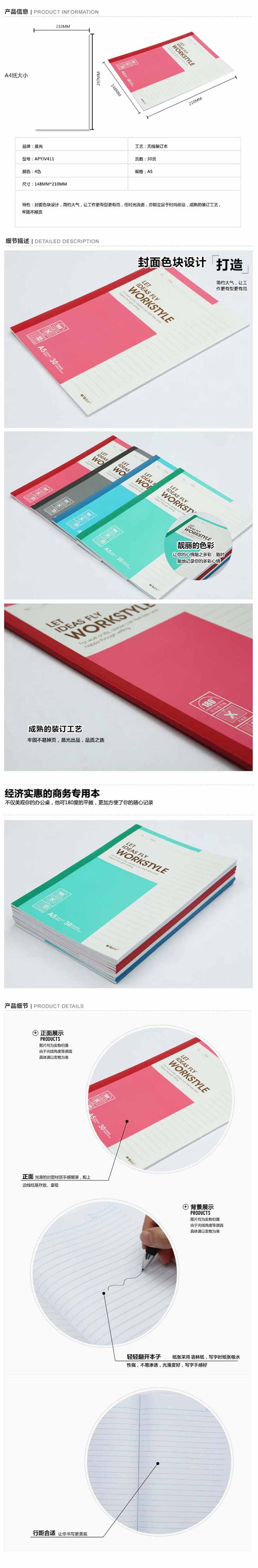 • 晨光 APYJV411 无线装订本 A5 30页 10本装按(包)销售