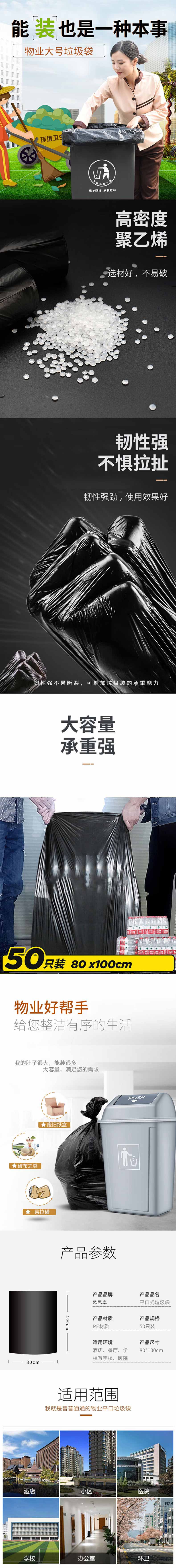 • 欧思卓 平口垃圾袋 80*100cm 30g 双面4.2丝 50个/把按(把)销售