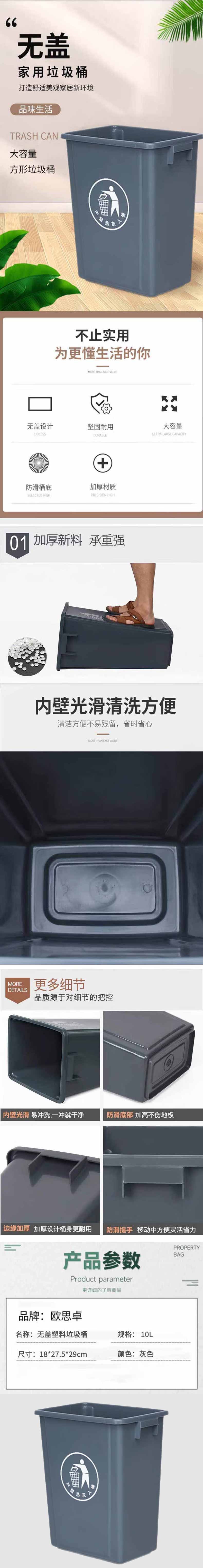 欧思卓 无盖塑料垃圾桶 18*27.5*29cm 10L 灰色按(个)销售   收藏