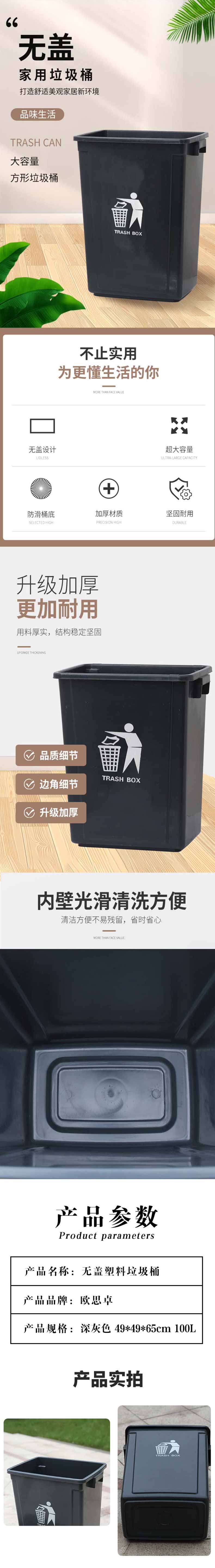 欧思卓 无盖塑料垃圾桶 100L 深灰色按(个)销售   收藏