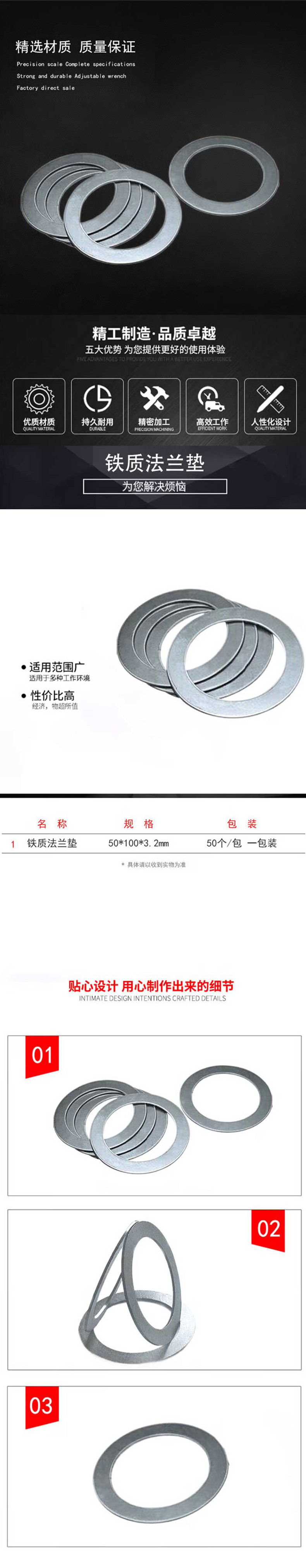 • 泰流科技 铁质法兰垫 50*100*3.2mm 50个/包 一包装按(包)销售