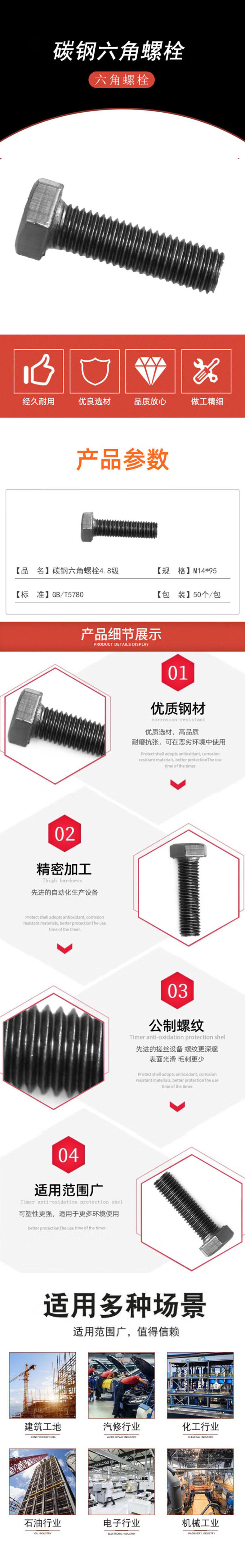 欧思卓 碳钢六角螺栓4.8级 M14*95 GB/T5780 50个/包按(包)销售   收藏
