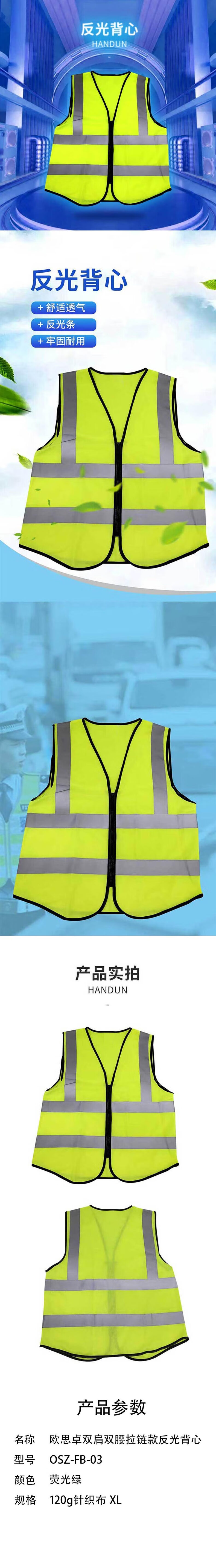 欧思卓 OSZ-FB-03 双肩双腰拉链款反光背心 荧光绿 120g针织布 XL按(件)销售   收藏