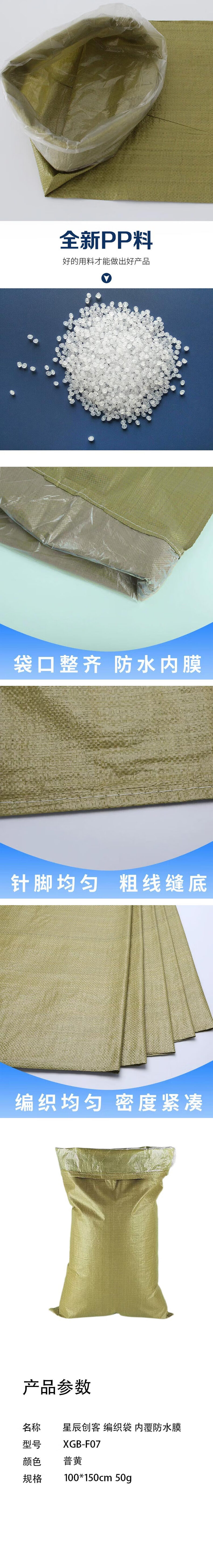 星辰创客 XGB-F07 编织袋 100*150cm 50g 内覆防水膜 普黄 50条/包按(包)销售   收藏