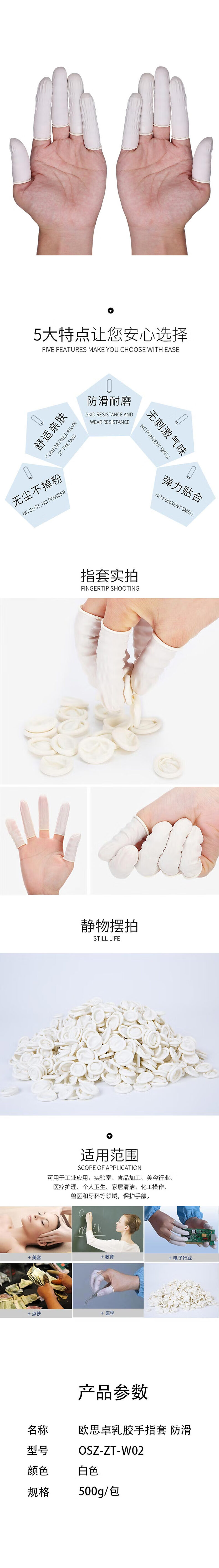 欧思卓 OSZ-ZT-W02 乳胶手指套 白色 防滑 500g/包按(包)销售   收藏