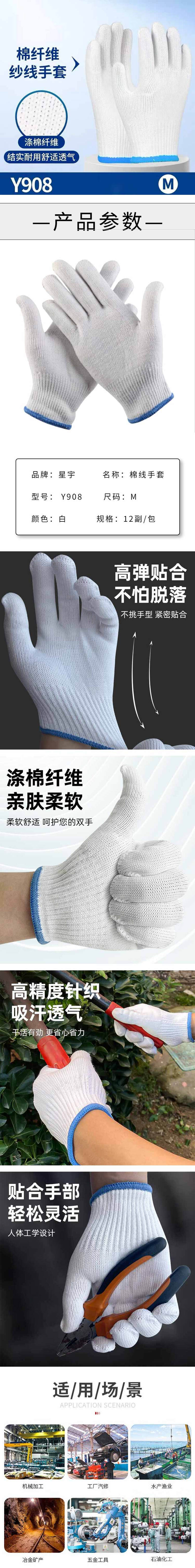 • 星宇 Y908 棉线手套 棉纱线加厚防滑耐用耐磨舒适透气  M 白 12副/包按(包)销售