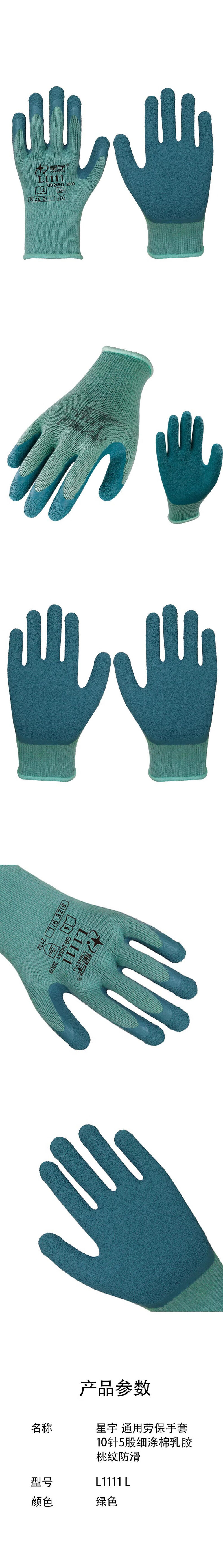 • 星宇 L1111 通用劳保手套  10针5股细涤棉乳胶核桃纹防滑 L 绿 12副/包按(包)销售
