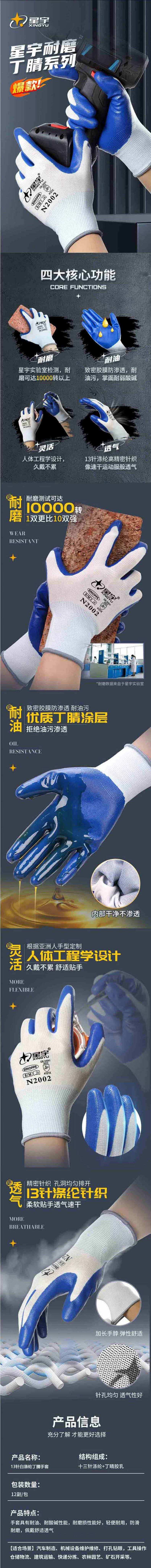 星宇 N2002 丁腈手套 13针白蓝涤纶丁腈耐油 M 蓝白 12副/包按(包)销售   收藏