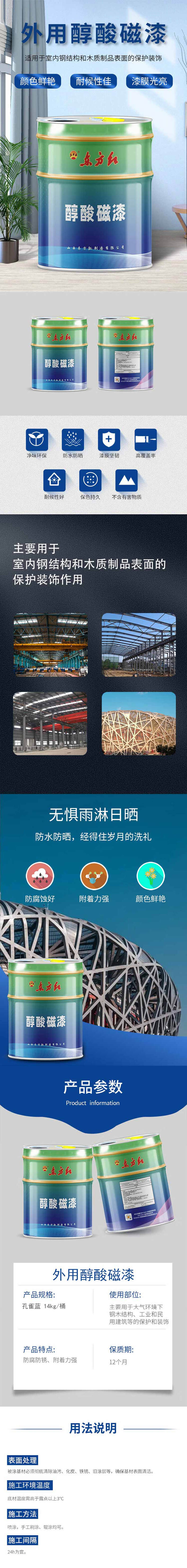 东方红 外用醇酸磁漆 14kg/桶 孔雀蓝按(桶)销售   收藏