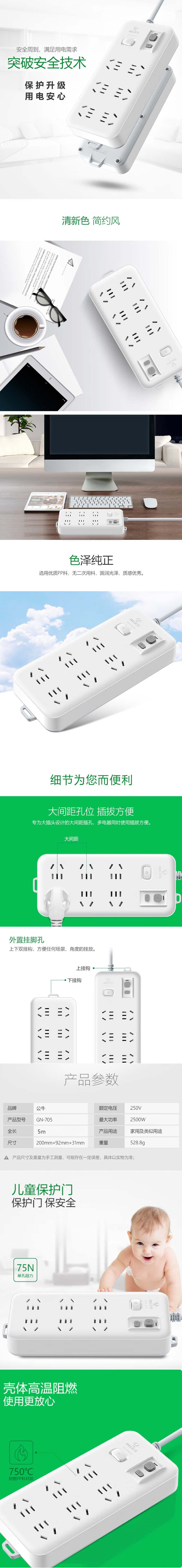 • 公牛 GN-705 排插 插线板/插排/接线板/拖线板  总控 6位 5米 白色 1个/包按(个)销售