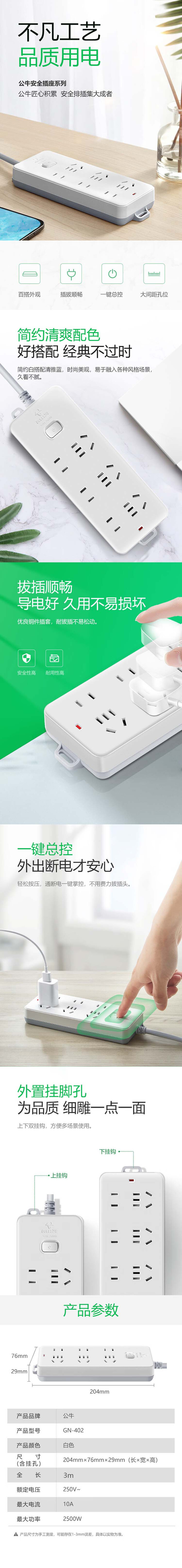 • 公牛 GN-402 排插  插线板/插排/接线板/拖线板 总控 6位 3米 白色 1个/包按(个)销售