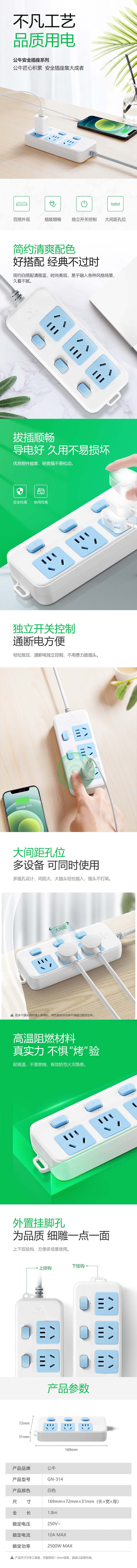 公牛 GN-314 排插 插线板/插排/接线板/拖线板 分控 3位 1.8米 白蓝 1个/包按(个)销售   收藏