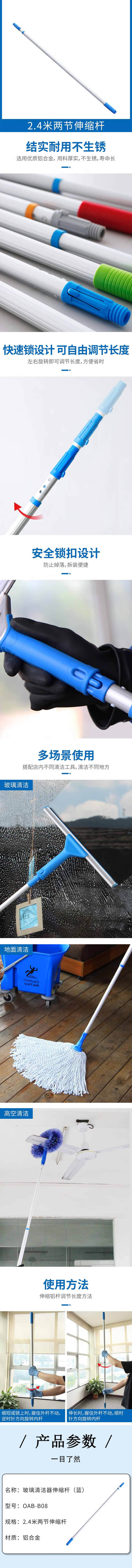欧思卓 OAB-B08 玻璃清洁器伸缩杆 (蓝)2.4米两节伸缩杆 铝合金按(个)销售   收藏