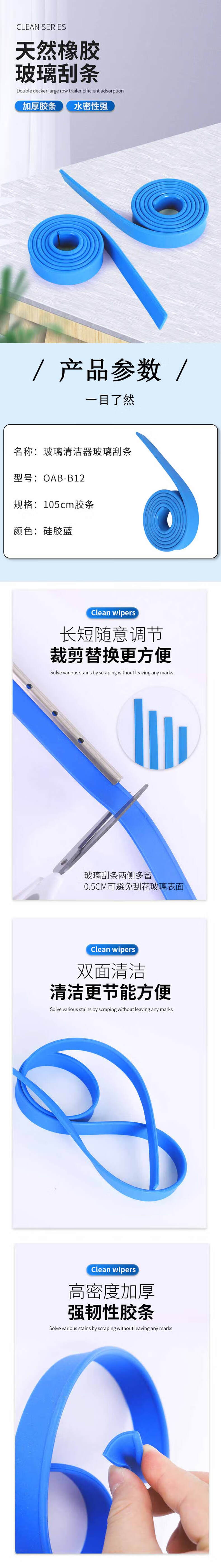 欧思卓 OAB-B12 玻璃清洁器玻璃刮条 105cm胶条(硅胶蓝)按(条)销售   收藏