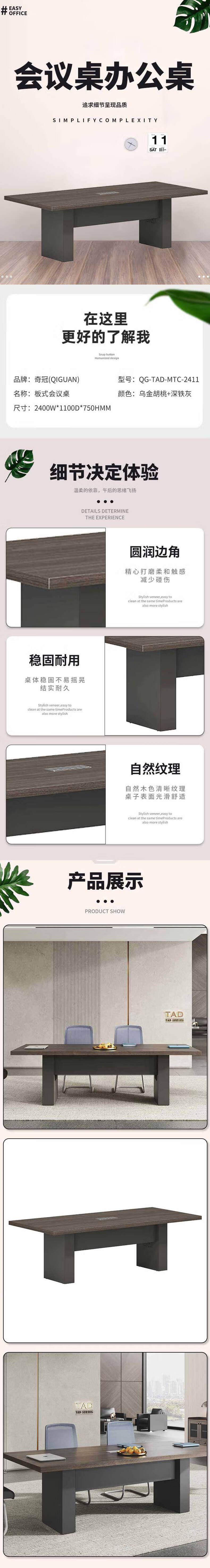 • 奇冠 QG-TAD-MTC-2411 板式会议桌  2400W*1100D*750Hmm 乌金胡桃+深铁灰按(张)销售