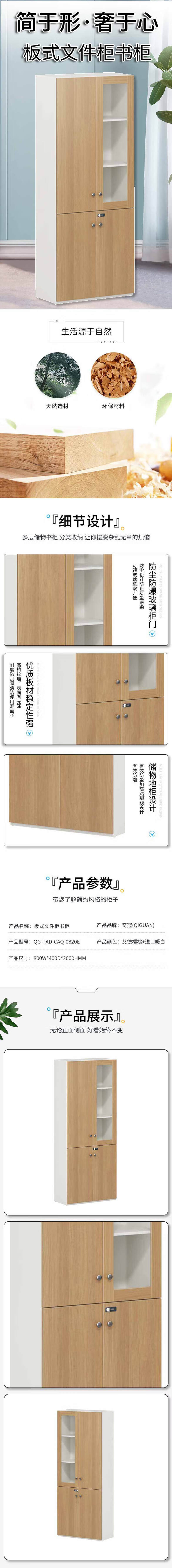 • 奇冠 QG-TAD-CAQ-0820E 板式文件柜书柜  800W*400D*2000Hmm 艾德樱桃+进口暖白按(张)销售