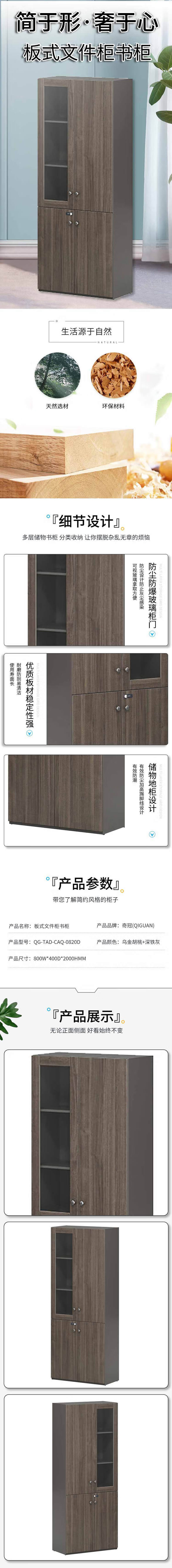 • 奇冠 QG-TAD-CAQ-0820D 板式文件柜书柜  800W*400D*2000Hmm 乌金胡桃+深铁灰按(张)销售