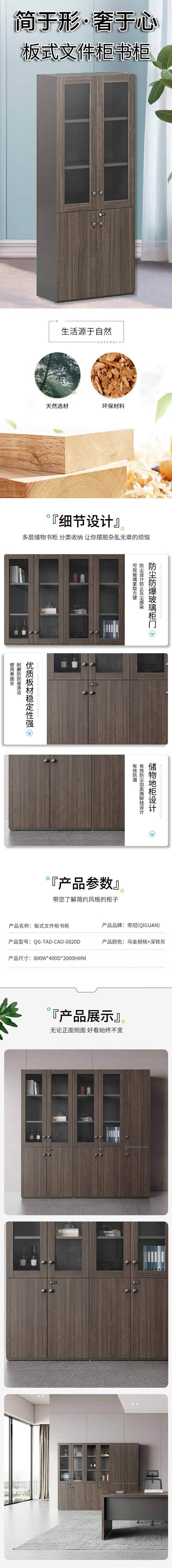 奇冠 QG-TAD-CAO-0820D 板式文件柜书柜 800W*400D*2000Hmm 乌金胡桃+深铁灰按(张)销售   收藏