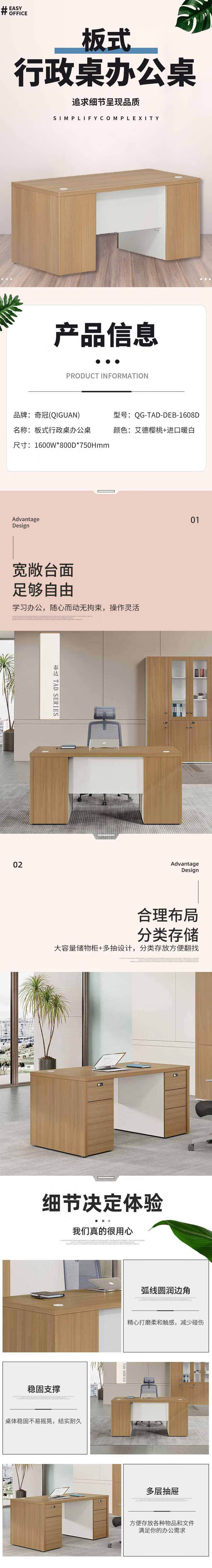 • 奇冠 QG-TAD-DEB-1608D 板式行政桌办公桌  1600W*800D*750Hmm 艾德樱桃+进口暖白按(张)销售