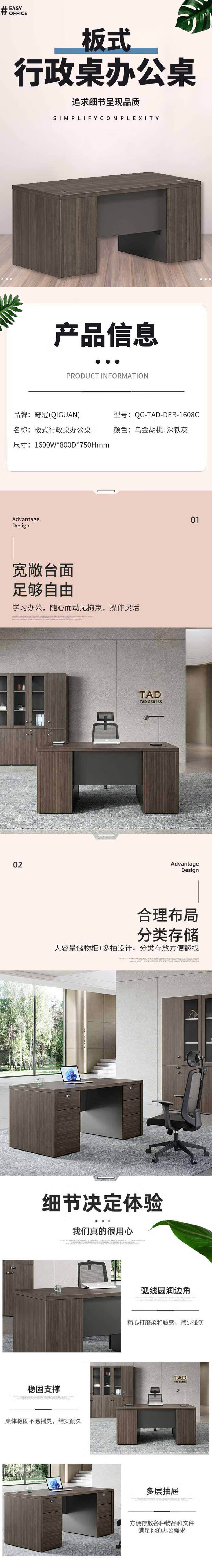 • 奇冠 QG-TAD-DEB-1608C 板式行政桌办公桌  1600W*800D*750Hmm 乌金胡桃+深铁灰按(张)销售