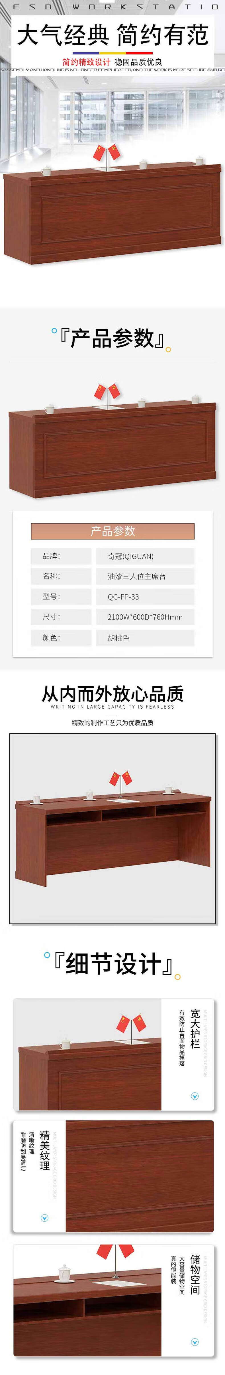 • 奇冠 QG-FP-33 三人位主席台条桌  油漆 2100W*600D*760Hmm 胡桃色按(张)销售
