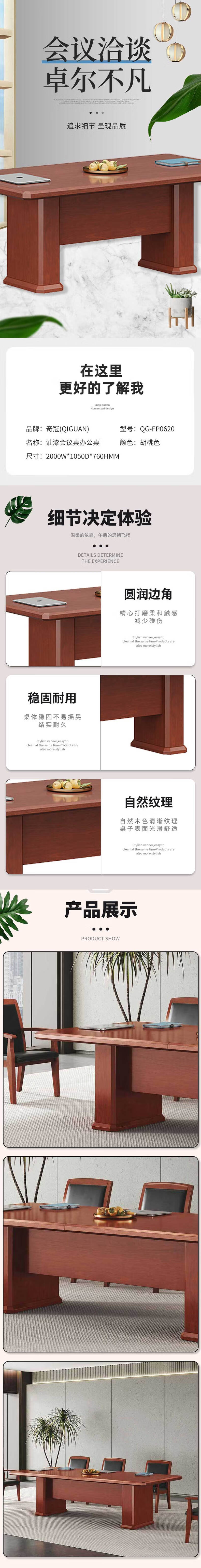 • 奇冠 QG-FP0620 油漆会议桌  2000W*1050D*760Hmm 胡桃色按(张)销售