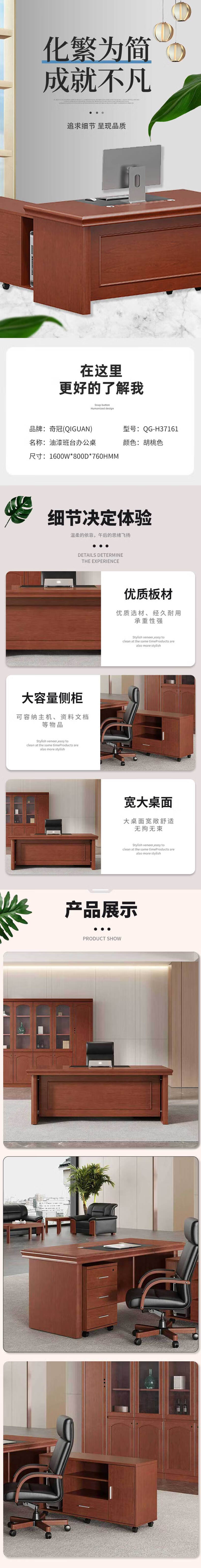 • 奇冠 QG-H37161 油漆班台办公桌  1600W*800D*760Hmm 胡桃色按(张)销售
