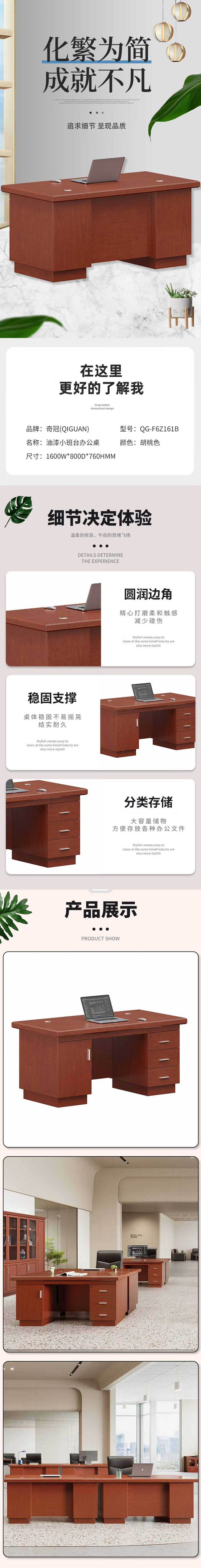 • 奇冠 QG-F6Z161B 油漆办公桌电脑桌写字桌  1600W*800D*760Hmm 胡桃色按(张)销售
