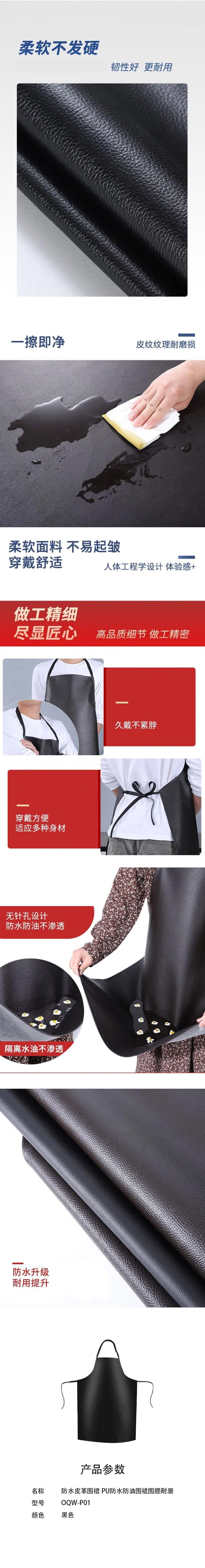欧思卓 OQW-P01 围裙 防水皮革围裙 PU防水防油围裙围腰耐磨 黑色 1条/包按(包)销售   收藏