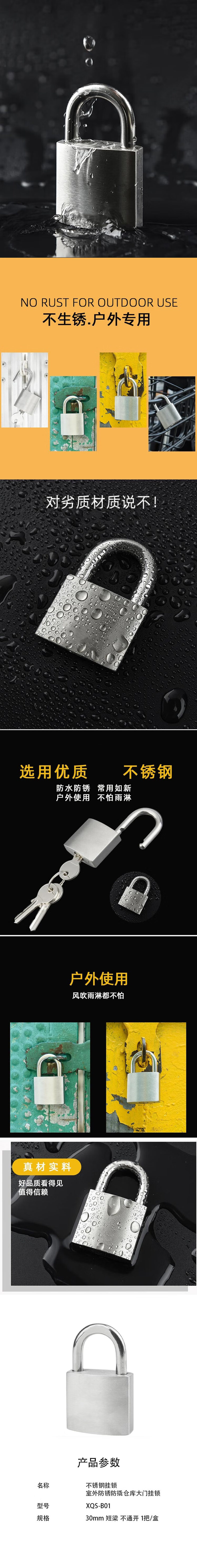 • 星辰创客 XQS-B01 不锈钢挂锁  室外防锈防撬仓库大门挂锁 30mm 短梁 不通开 1把/盒按(把)销售