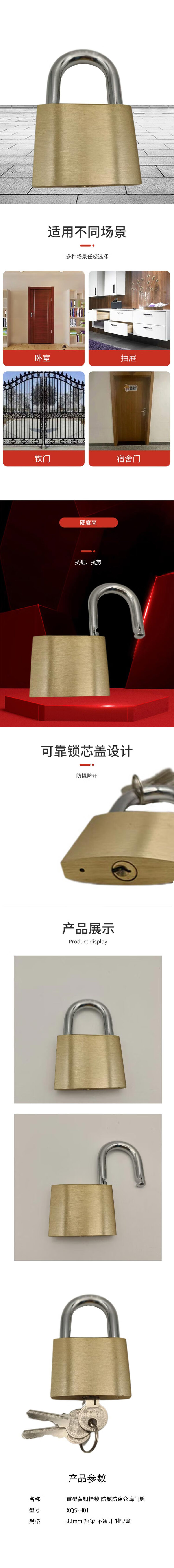 • 星辰创客 XQS-H01 重型黄铜挂锁  防锈防盗仓库门锁 32mm 短梁 不通开 1把/盒按(把)销售
