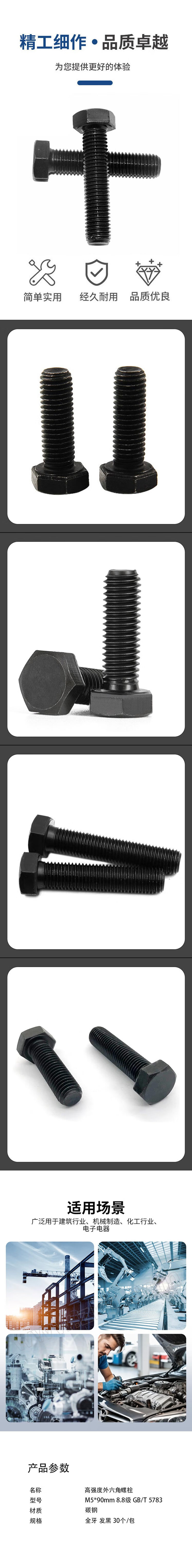 欧思卓 M5*90mm 高强度外六角螺栓 碳钢 8.8级 GB/T 5783 全牙 发黑 30个/包按(包)销售   收藏