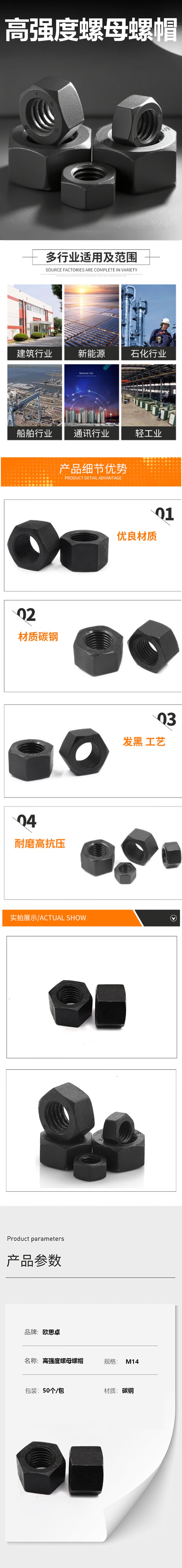 欧思卓 M14 高强度螺母螺帽 碳钢 8.8级 GB/T 6170 发黑 50个/包按(包)销售   收藏