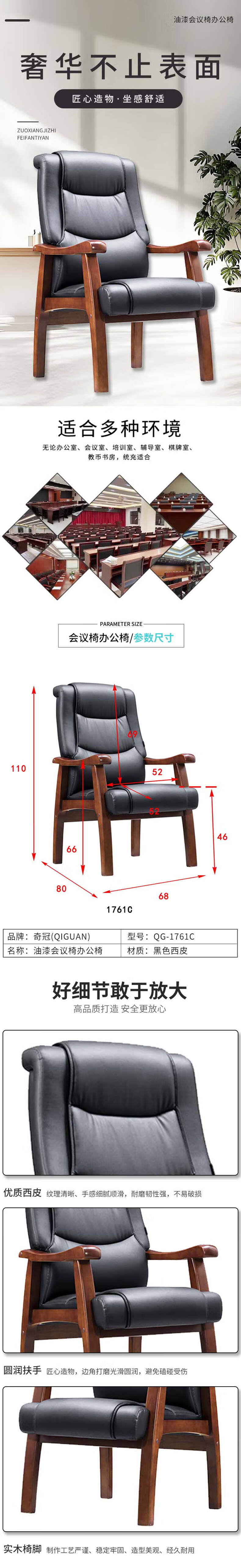 • 奇冠 QG-1761C 办公椅  油漆会议椅 黑色西皮按(把)销售