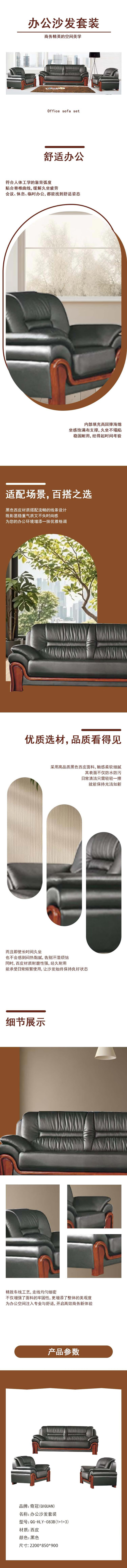 • 奇冠 QG-HLY-083B(1+1+3) 办公沙发套装 黑色西皮按(套)销售