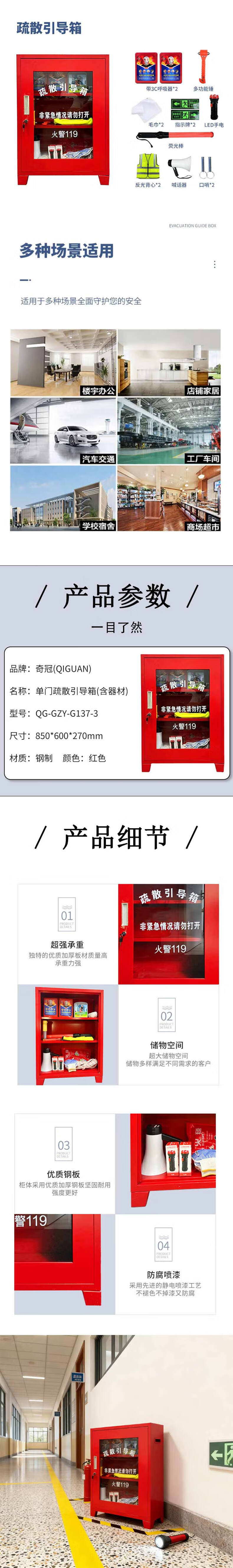 • 奇冠 QG-GZY-G137-3 疏散引导箱  (含器材) 850*600*270mm 钢制 红色 组按(组)销售