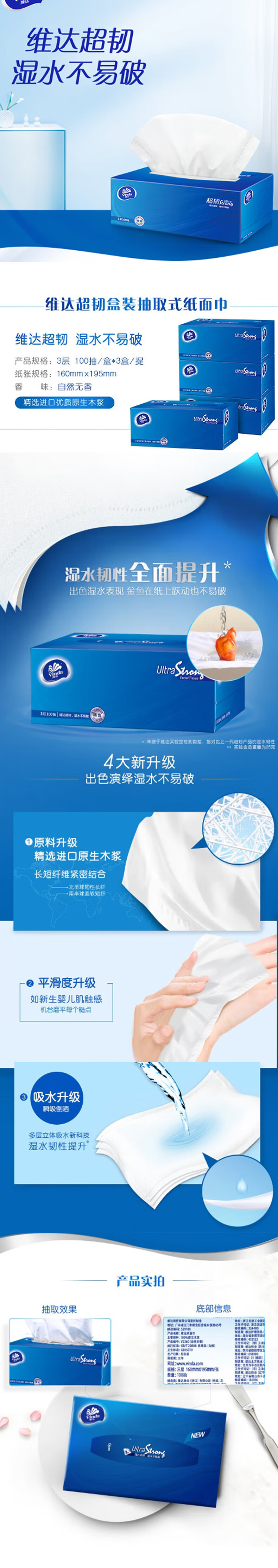 • 维达 V2260 盒装抽纸  160*195mm 3层 100抽 3盒/提按(提)销售