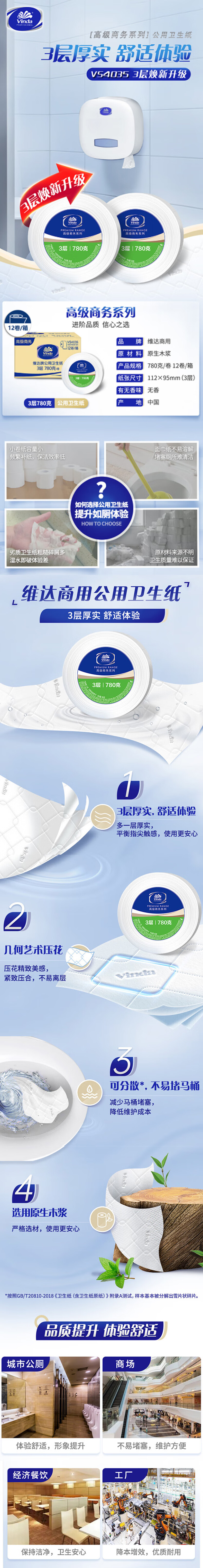 • 维达 VS4035 大卷纸  三层 112mm*95mm/节 约780克/卷 12卷/箱按(箱)销售