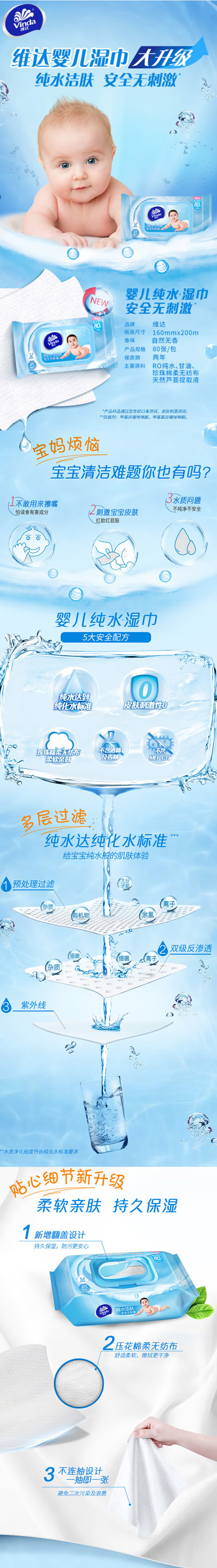 • 维达 VW2002 婴儿护肤柔湿巾  200*160mm 80片/包按(包)销售