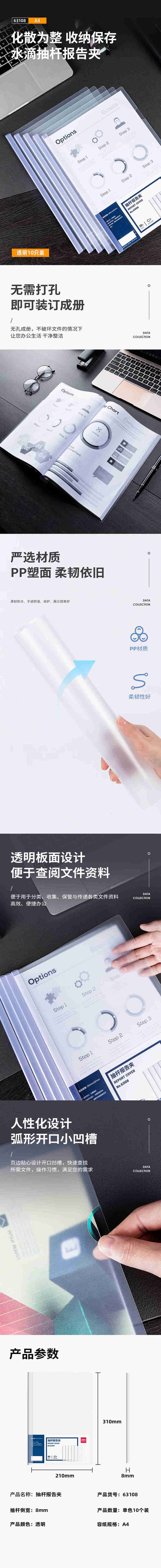 • 得力 63108 拉杆夹  A4透明抽杆报告夹 透明 8mm 10个/包 单位:包按(包)销售