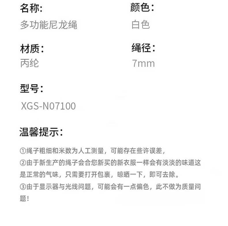 • 星辰创客 XGS-N07100 尼龙绳  耐磨编织绳货车捆绑绳晒衣绳 7mm*100m 白色 一捆装 捆按(捆)销售