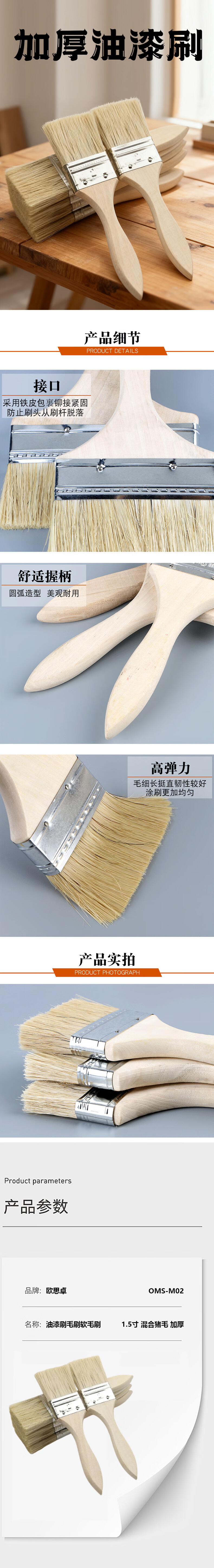 欧思卓 OMS-M02 油漆刷毛刷 软毛刷 1.5寸 混合猪毛 加厚 把按(把)销售   收藏