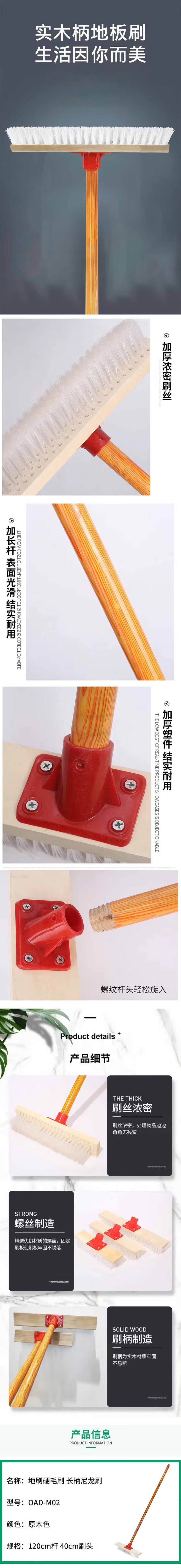 • 欧思卓 OAD-M02 长柄尼龙刷  地刷硬毛刷  原木色 120cm杆 40cm刷头 1把按(把)销售