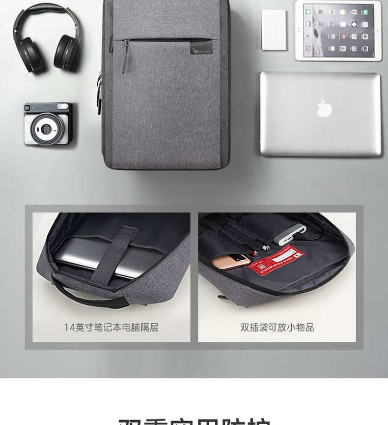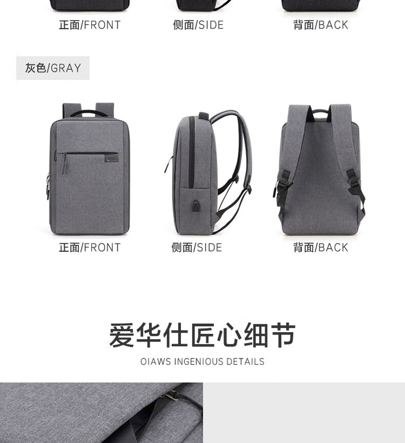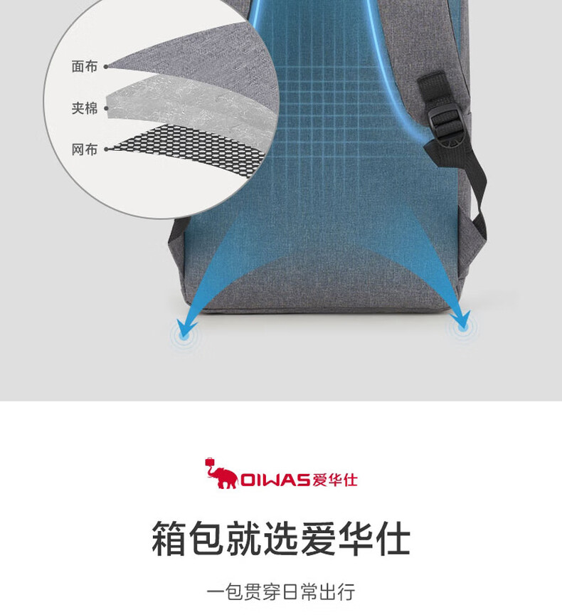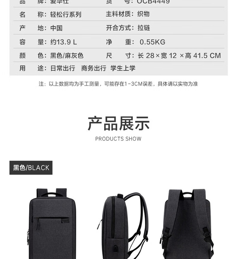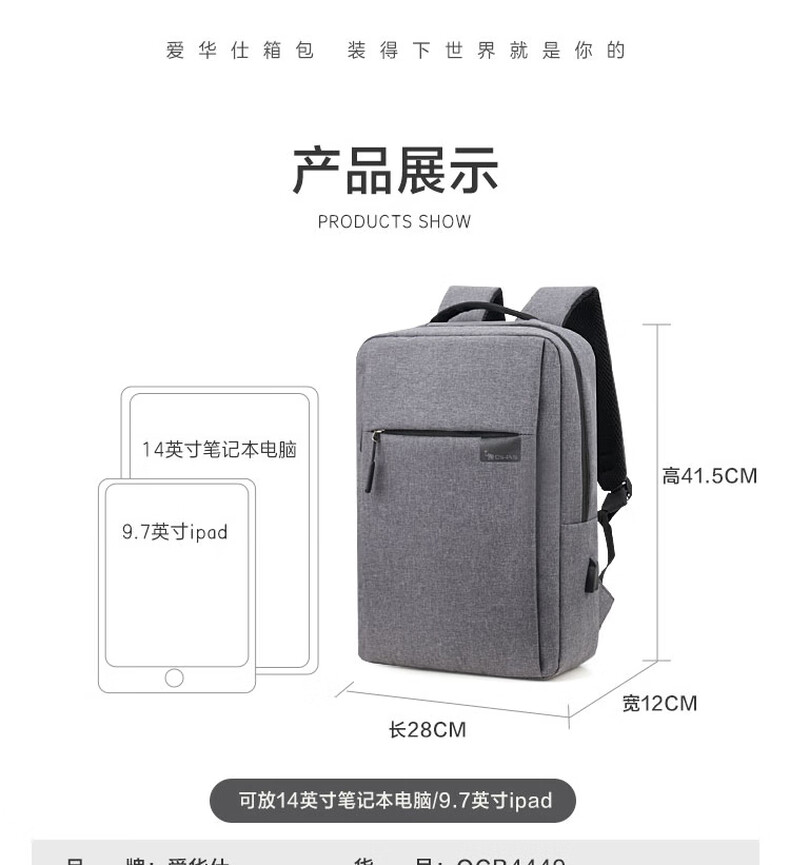 爱华仕 OCB4449 双肩包 背包 约28*12*41.5cm黑/灰色随机按(个)销售   收藏