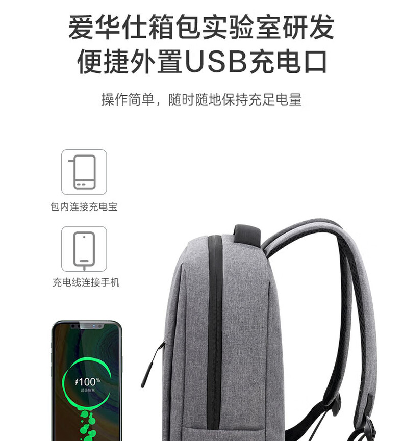 • 爱华仕 OCB4449 双肩包  背包 约28*12*41.5cm黑/灰色随机按(个)销售