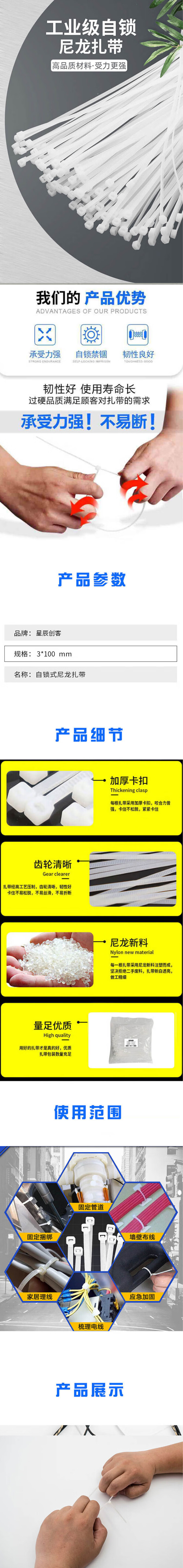 星辰创客 3*100mm 尼龙扎带 自锁式尼龙扎带白色 1000条/包 一包装按(包)销售   收藏