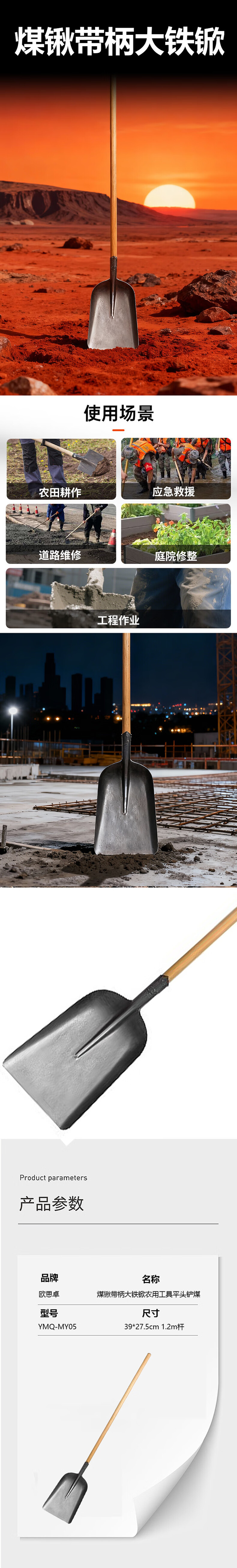 • 欧思卓 YMQ-MY05 煤锹  39*27.5cm 1.2m杆 大号 本色 个按(个)销售
