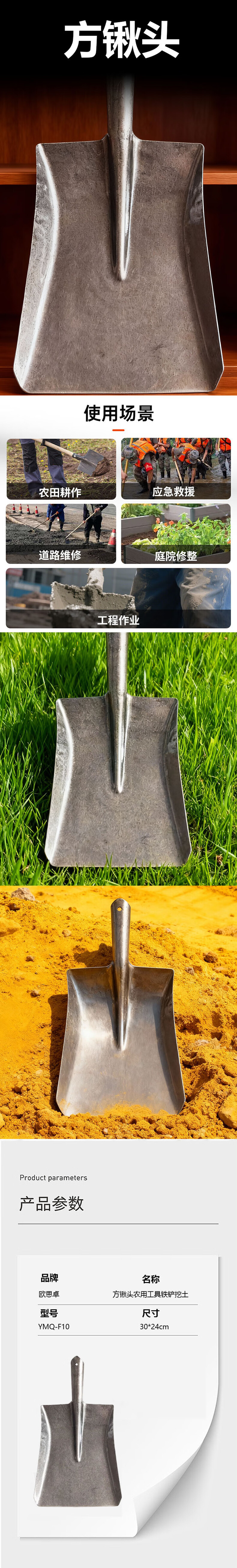 • 欧思卓 YMQ-F10 方锹头  农用工具铁铲挖土 30*24cm 中号 本色 个按(个)销售