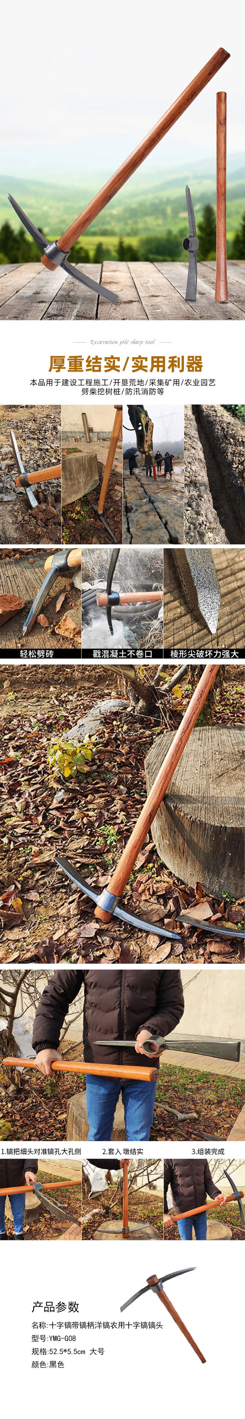 欧思卓 YMG-G08 十字镐 带镐柄洋镐农用十字镐镐头 52.5*5.5cm 大号 黑色 个按(个)销售   收藏